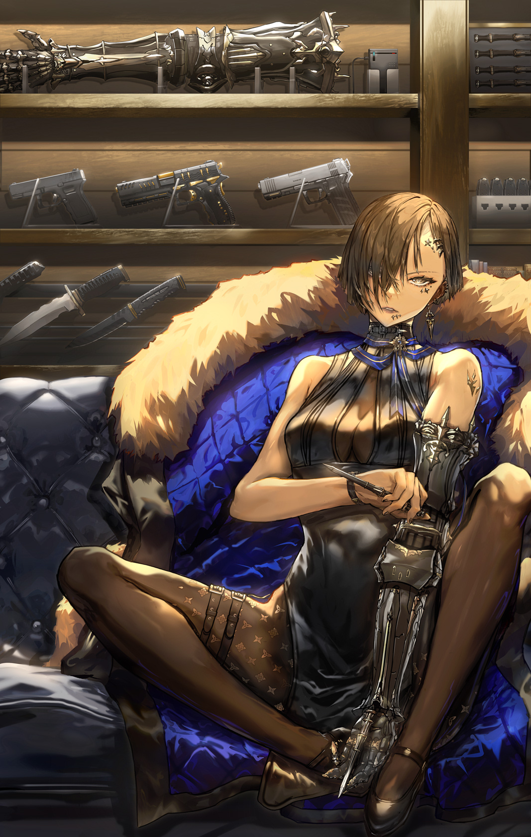※サム化かしております。 杭武装の義肢のチャイニーズマフィア。 SFサイバー風中華マフィアとりなます。 義肢は杭を射出・又は打ち出す暗器的な武装でのマフィアの女ボス的な立ち位置。 髪型はそり込み・ピアスに中華服めいた軽装イメージです。